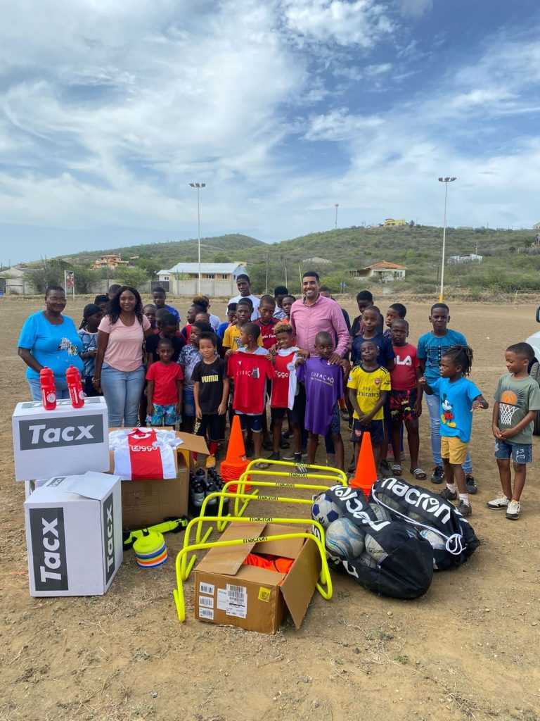 WILLEMSTAD- 7 di yüni 2022 – Resientemente Ofisina di Turismo di Kòrsou (CTB) a hasi entrega di material di futbòl na 3 klup deportivo hubenil. Ta trata aki di materialnan ku a keda usá durante e klínika di futbòl ku a keda duná resientemente pa Ajax na 400 hóben aki na Kòrsou. E klupnan a risibí materialnan nobo tambe manera shùrt di Ajax i tambe bòter di awa pa deportista. Tambe a repartí bou di e klupnan bala i peon ku a keda usá durante di e klínika di futbòl. E siguiente klupnan a keda skohé pa risibí e materialnan; ta trata di: Union Deportivo Bandabou (Undeba) na Soto, Sport Vereniging Hubentut Fortuna i Centro Hubenil Mahuma. CTB ta sumamente kontentu di por a hasi e gesto aki na e hóbennan i ta sigur ku e hóbennan lo bai hasi bon uso di e materialnan deportivo ku nan a risibí.