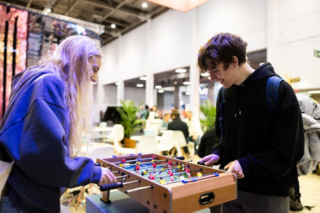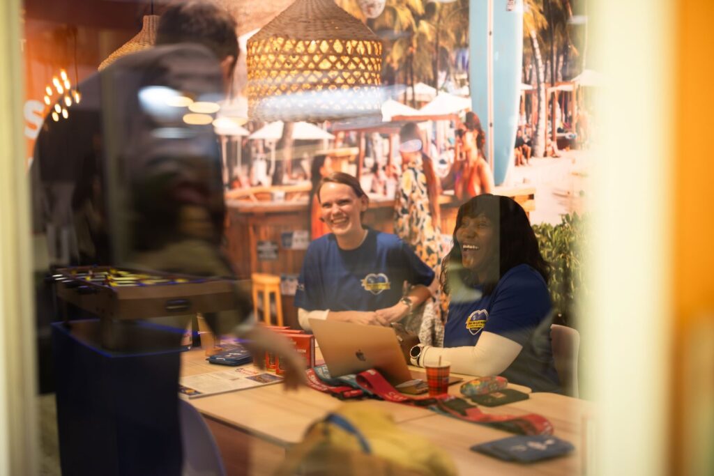 In view of Curaçao’s match against Germany on June 14 as part of the 2026 FIFA World Cup, CTB invited guests to take part in friendly foosball matches. These games took place while participants were waiting for their meetings to start. Dona Regis-Prosper, Secretary-General and CEO of the Caribbean Tourism Organization also stopped by the Curaçao stand and played a game of foosball against Muryad de Bruin, CTB Managing Director.